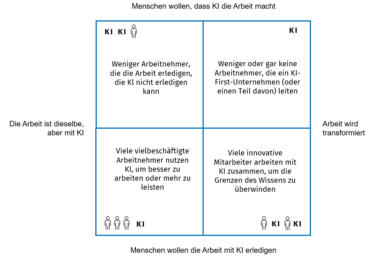 • Nutzen KI, um die Arbeit der Mitarbeitenden sinnvoller zu machen (Szenario 3 und 4) oder